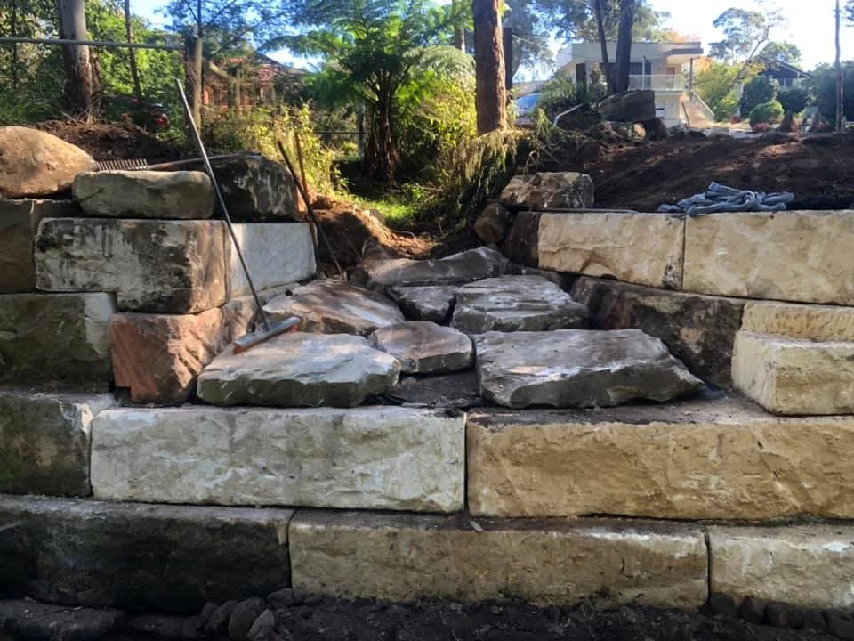 - Cms Contracting supplied and installed concrete sleepers and sandstone block retaining walls at Ryde.